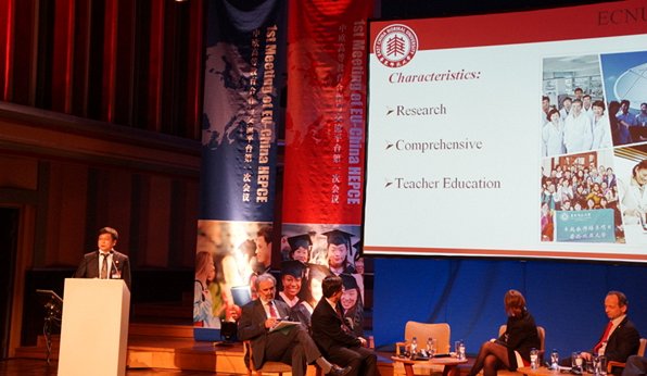 President Chen Qun was invited to deliver a keynote speech entitled Partnerships across Borders: A Case Report of the ENS-ECNU Joint Graduate Program at the EU-CHINA University Presidents' Dialogue during 1st Meeting of EU-China HEPCE. With full and accurate information, President Chen's speech won great attention and applauds from the audience. In his speech, Chen made a detailed introduction that wefrom students’ selection, curriculum setting to scholarship awarding of the Sino-French program, which began more than ten years ago and has gained much achievement in the cooperation of students training and scientific research, and shared ECNU's experience of international exchanges with the participants.