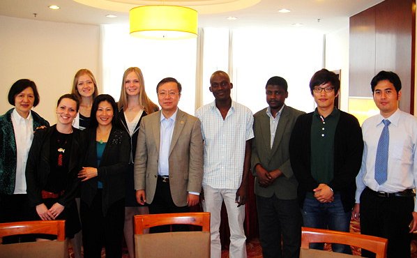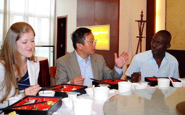 Ren Youqun (Center) chat with international students at the luncheon party.