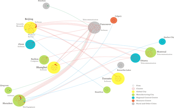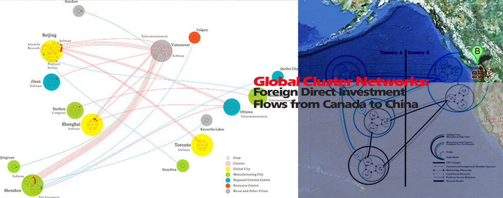 Using a network perspective of multinational firms to investigate the spatial patterns of 299 FDI cases from Canada to China between 2006 and 2010, this article develops conceptions of global cluster networks and global city-region networks that are based on foreign direct investment (FDI) activities which provides a brand new prospective in the study of global and regional economy in the post financial crisis era. And it also illuminates the transformation and upgrading of costal industries in China as well as the globalization of Chinese businesses.
