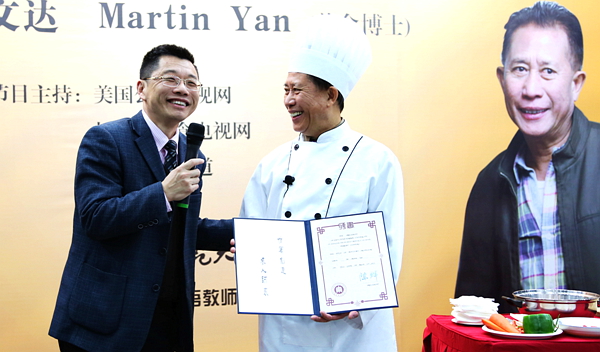 ECNU Vice President Lu Jin granted Martin Yan an honor certificate.