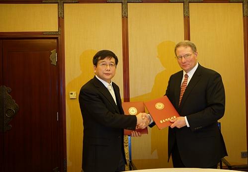 Thereafter, Chen and Amrhein renewed the memorandum of cooperation between the two universities and exchanged opinions on developing further cooperation in new fields with new patterns, and the summer internship programs for undergraduates.