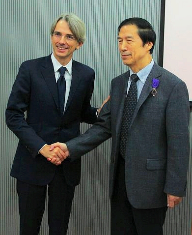 Emmanuel Lenain awards the medal of Ordre des Palmes académiques to academician He.