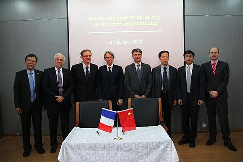 to President Chen Qun signs an work agreement with Mr. Laurent Bonneviot.