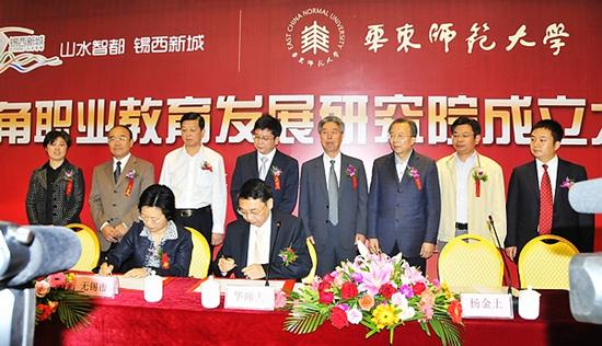 In his speech at the ceremony, ECNU President Chen Qun pointed out that the founding of the Yangtze Delta Institute of Vocational Education Development meant not only a new style of cross-regional cooperation in education, but also an important attempt of integrating resources for a harmonious development of education. He hoped ECNU could give full play to its advantages in vocational education disciplines and make close cooperation with Wuxi Vocational Education Park to promote resources sharing in the vocational education of the Yangtze Delta.