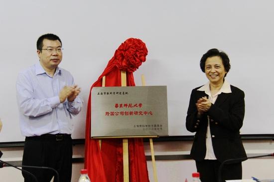 ECNU Vice President and Xu Meihua, an inspector of Shanghai Scientific and Technological Commission, unveil the plaque of the research center