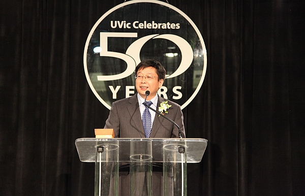 In UVic, Chen was invited to attend Uvic’s 50th anniversary ceremony and accepted the “International Cooperation Partner Award” given specially to ECNU from UVic for celebrating the 30th anniversary of cooperation between the two universities. Chen, on behalf of ECNU, expressed his congratulations for Uvic and the willingness of further cooperation with Uvic in the future in his speech at the ceremony.