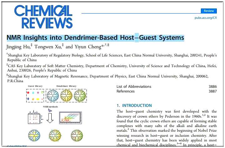 "Chemical Reviews" publishes Prof. Cheng and his team's progress in research of nuclear magnetic resonance (NUM) insights into dendrimer-based host-guest systems.