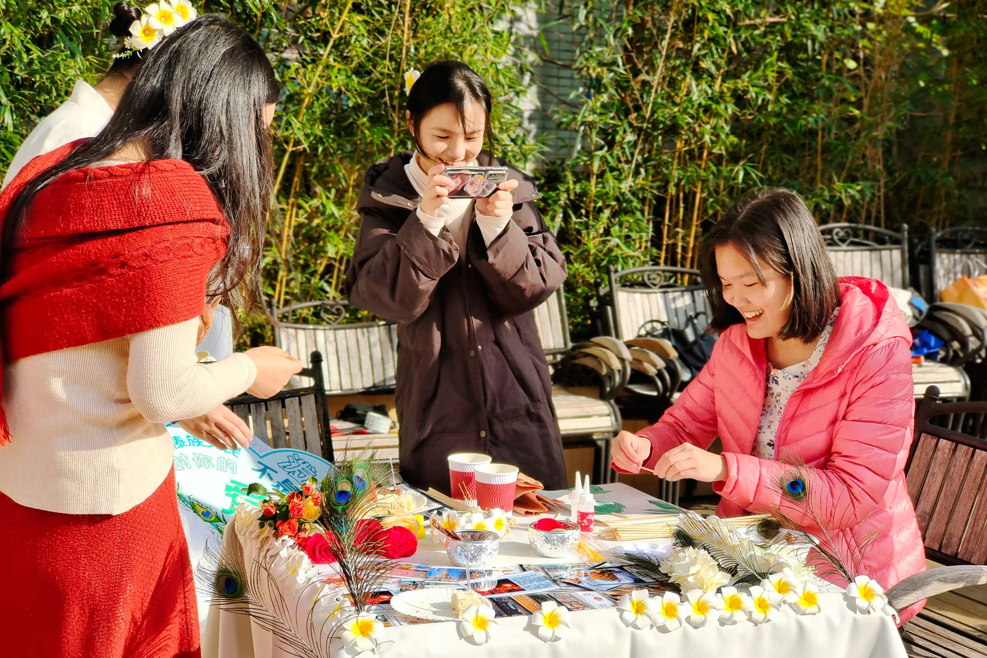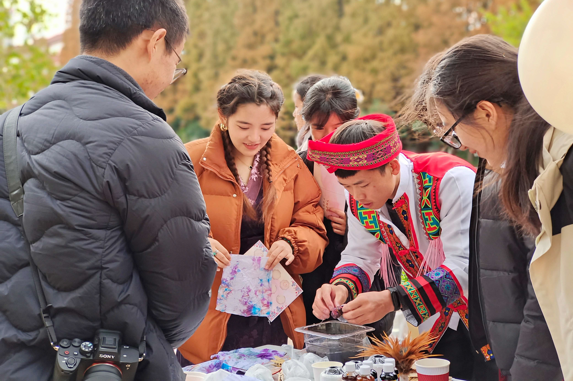 At the festival, students and teachers wandered freely, visiting the booths of different ethnic groups, admiring their distinctive costumes and collecting badges. Attracted by those exquisite ethnic booths and settings, the students tried on ethnic costumes and took pictures with the ethnic KT boards.