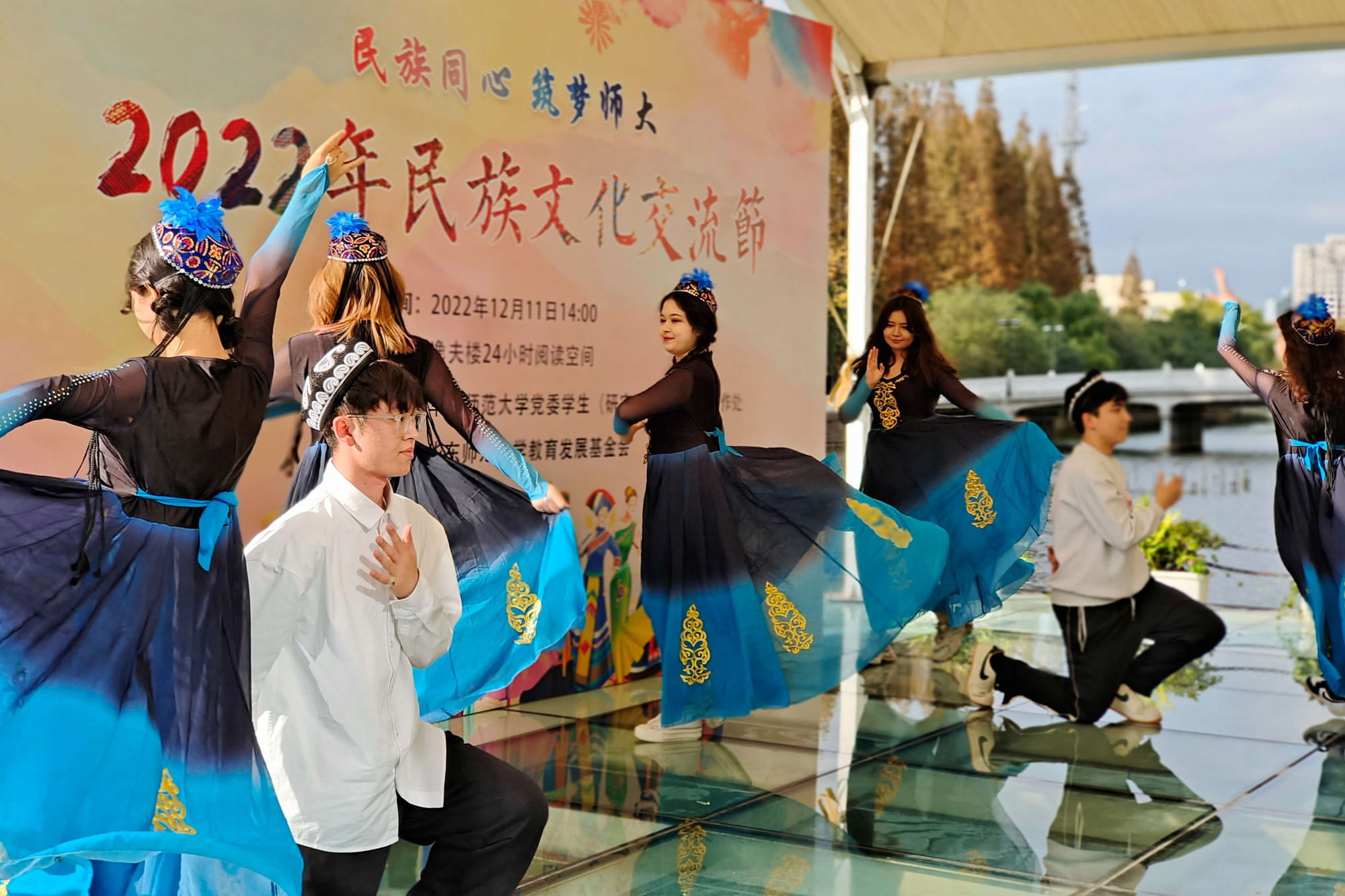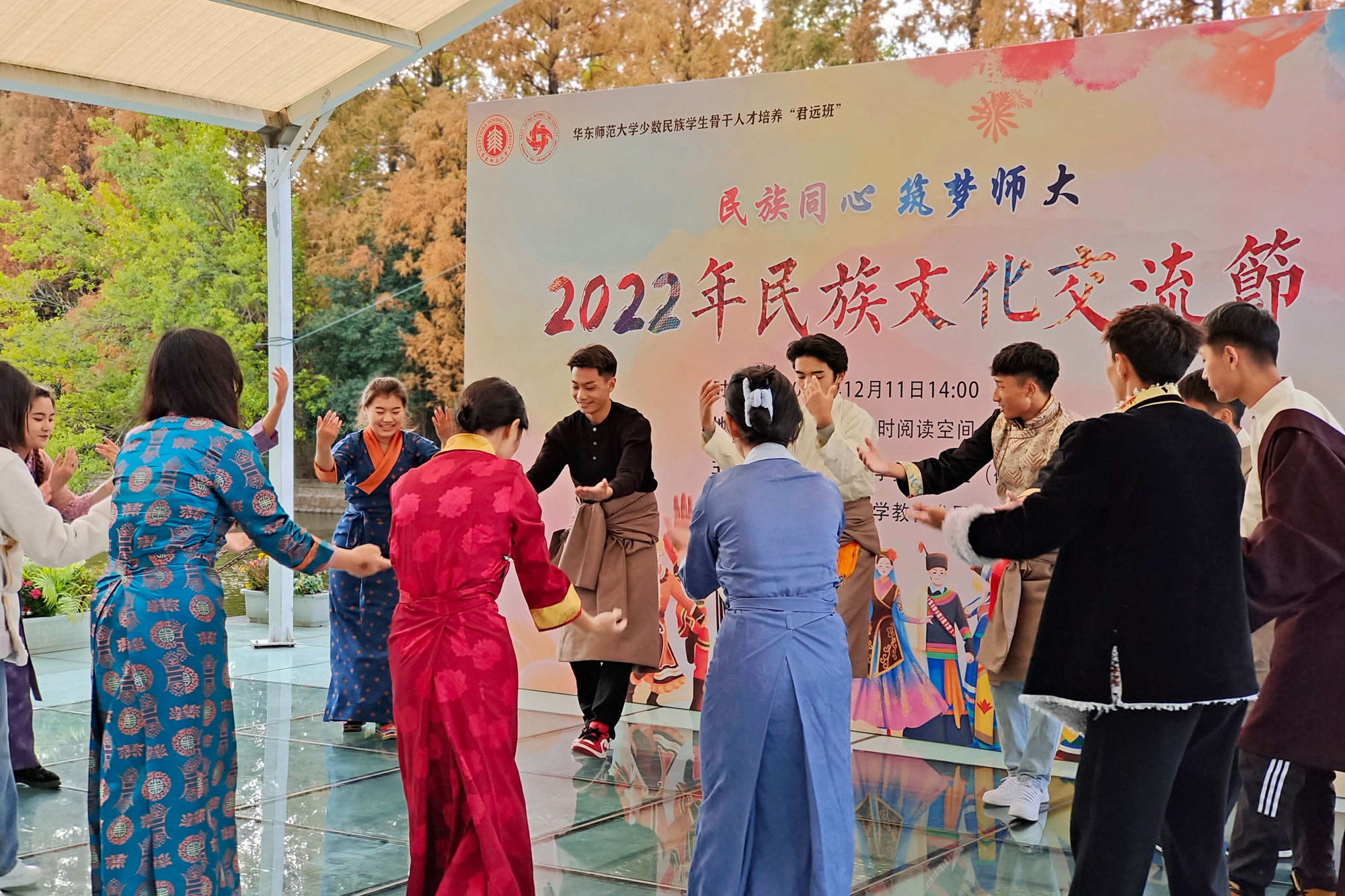 On Dec. 12th, the ECNU 2022 Ethnic Cultural Exchange Festival was held by the Liwa River. Twelve ethnic cultural booths were set up at the festival, covering the Uyghur, Tibetan, Zhuang, Kazakh, Korean, Manchu, Mongolian, Dai, Miao, Dong, Yi and Tajik minority groups.