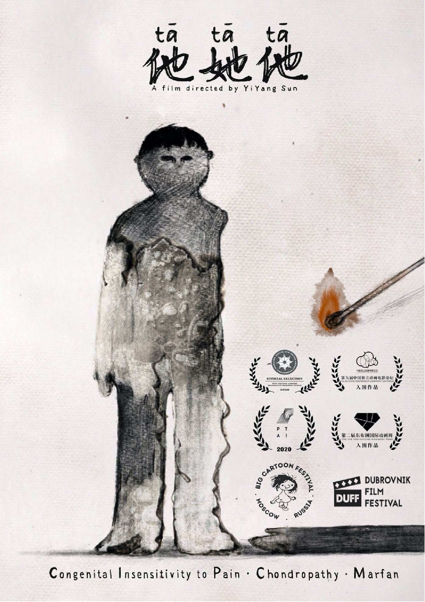 In “He She He”, Sun made three personal pseudo-documentary animations based on the research of Congenital Insensitivity to Pain, Chondropathy, and Marfan syndrome. The author attempted to use the body as a common medium for establishing empathy and achieve the transformation of empathy from perception to personal cognition.