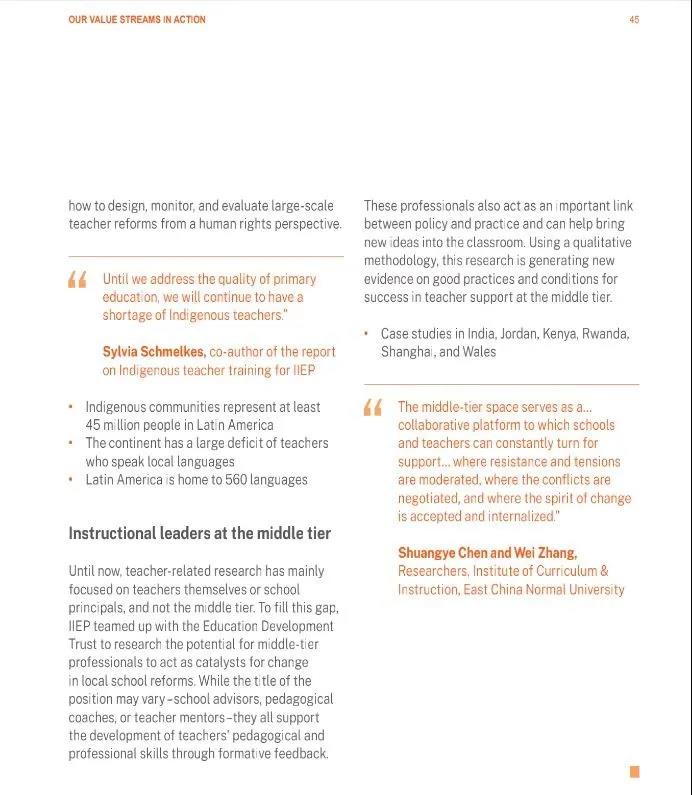 In December 2020, the two professors were commissioned by the IIEP-UNESCO to undertake a case study of the middle-tier teaching leaders project in Shanghai, China. In the Shanghai report, they elevated the project's original understanding of scattered, flat middle-tier teaching leadership to middle-tier space of teaching leadership, ingeniously creating a new concept and new expression that bridge China and the world.
