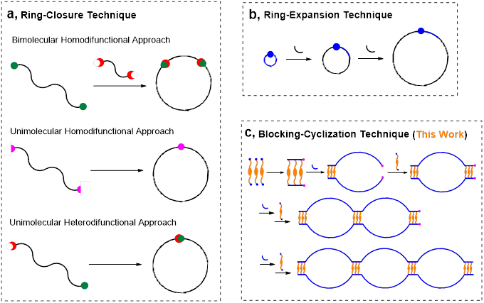 Despite previous research findings and extensive reports on the formation of cyclic polymers, the strict synthetic strategies were divided into only two categories: ring-closure technique and ring-expansion technique.