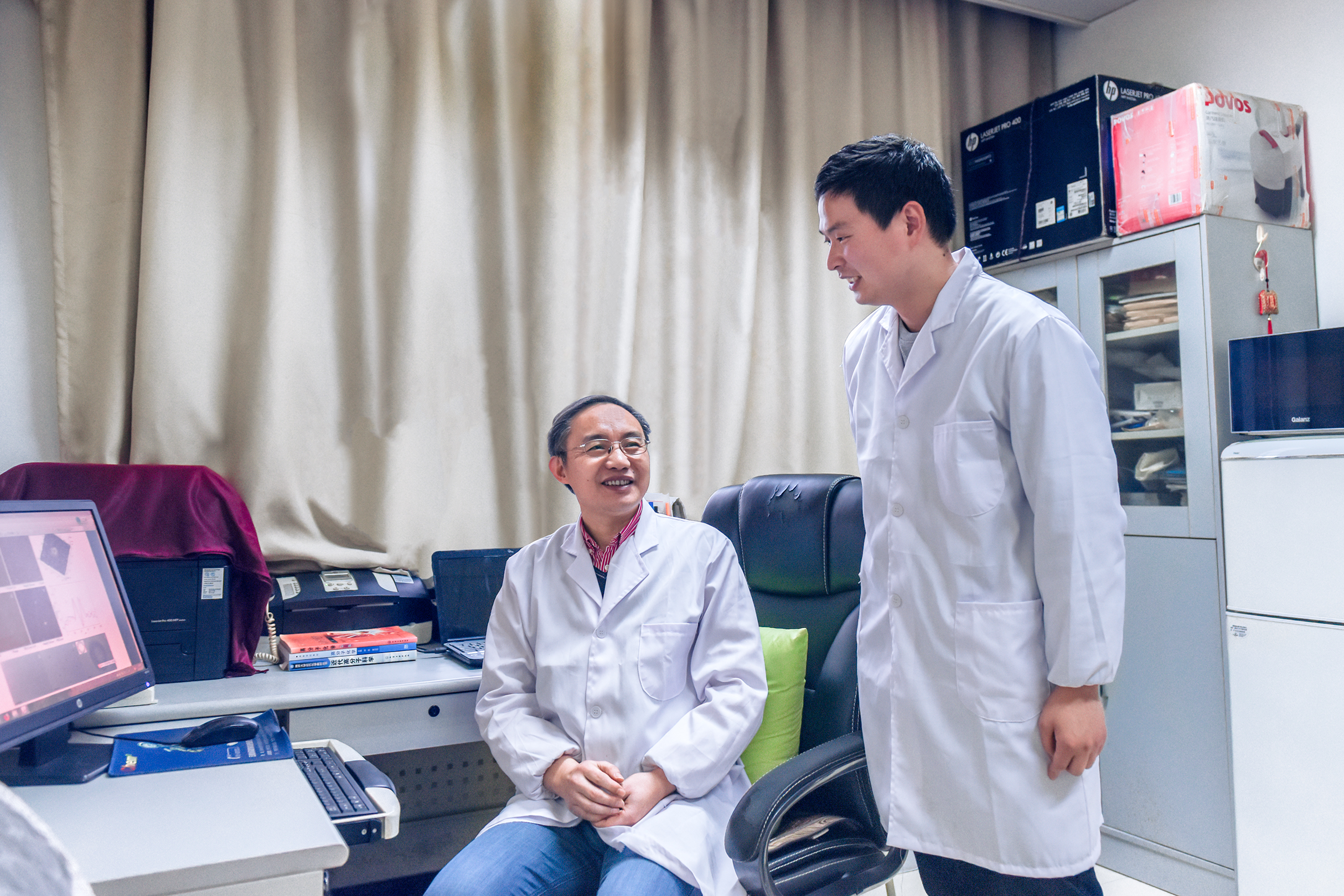 Prof. Xie Meiran and Ph.D student Chen Jie.