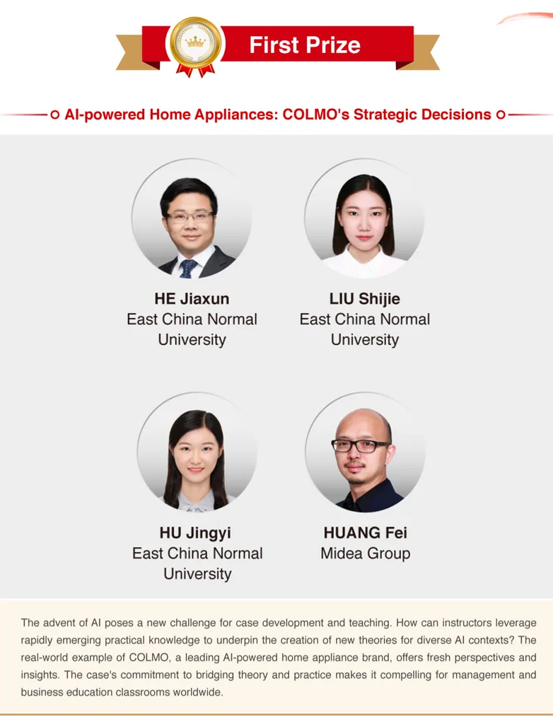 On April 12th, the results of the 2023 Global Contest forthe Best China-Focused Cases were announced. The case "AI powered Home Appliances: COLMO's Strategic Decisions" written by Professor He Jiaxin's team won first prize after the final evaluation by an international expert committee composed of Harvard Business School,Ivey Business School (Canada), European School of Business Administration, European Case Exchange Center, and China Europe International Business School.