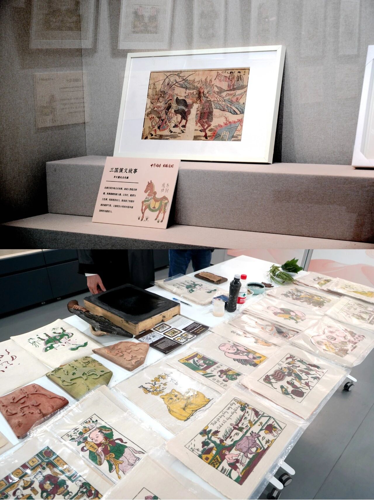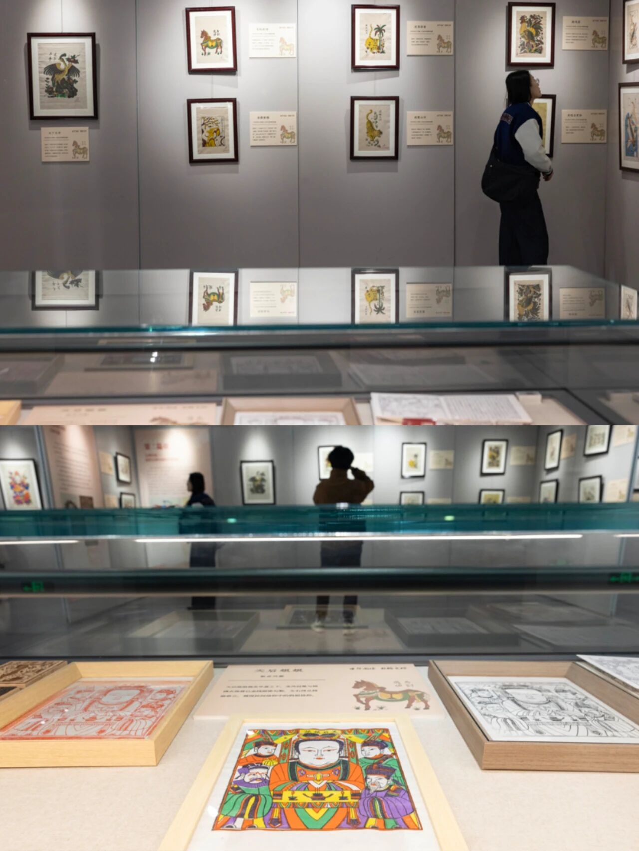 The majority of the pieces are New Year woodprint pictures, an artform that was listed among China's first batch of national intangible cultural heritage back in 2006. The folk tradition employs woodblock printing techniques and typically features auspicious and celebratory themes, acting as vivid expressions of people's hopes for a better life.