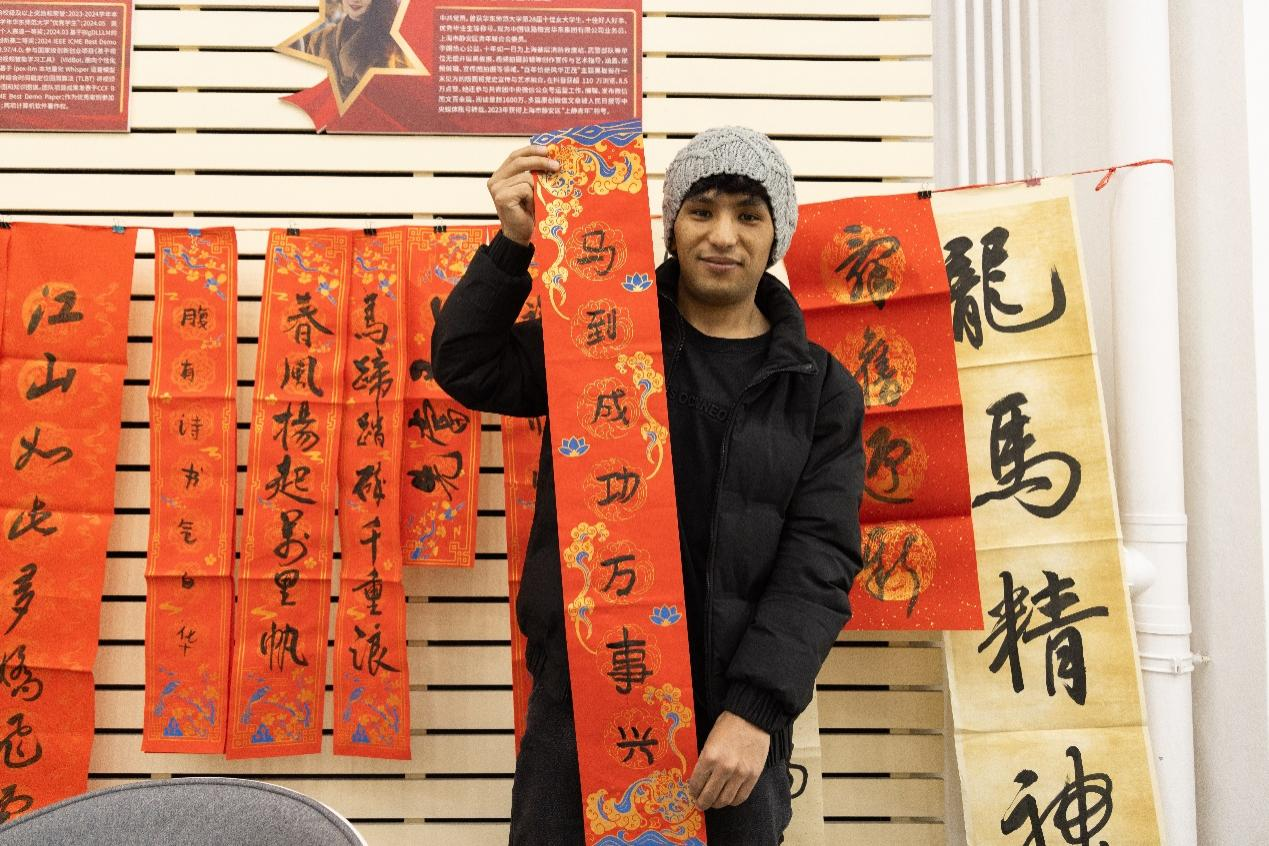 For international students, this event was a fascinating journey of cultural exploration. Bai Lanxin, a sophomore from Turkey at the School of International Chinese Studies, shared her feelings: "I knew nothing about Chinese calligraphy before, but now I can recognize Chinese characters and master their strokes. I wish everyone a Happy New Year!"